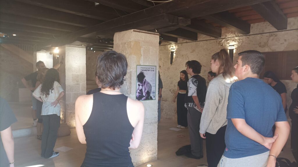 Στις 7 Νοεμβρίου 2023 οι μαθητές –μέλη του Ομίλου Θεατρικής & Μουσικής Παιδείας του σχολείου μας παρακολουθήσαν ένα θεατρικό – καλλιτεχνικό εργαστήρι για μαθητές γυμνασίου και λυκείου με τίτλο “Παραλογές-Remastering” από τους «nomades artcore». Το εργαστήρι αυτό ως βασικό στόχο είχε να αφουγκραστούμε τη δύναμη που διαθέτει ο λαϊκός προφορικός λόγος και να δώσουμε και σήμερα την αξία που του αναλογεί. Επικεντρωθήκαμε στην ανακάλυψη της παράδοσης και στο πώς μπορεί κανείς να την επαναδιατυπώσει κρατώντας την παράλληλα ζωντανή, σε μια εποχή που τα ήθη και τα στερεότυπα αλλάζουν. Πώς οι νέοι θα απελευθερωθούν από παλιές κοινωνικές νόρμες και θα τους δοθεί η δυνατότητα να εντάξουν σύγχρονους προβληματισμούς και εικόνες, χωρίς να αποκλίνουν από την ουσία του κάθε ποιήματος;