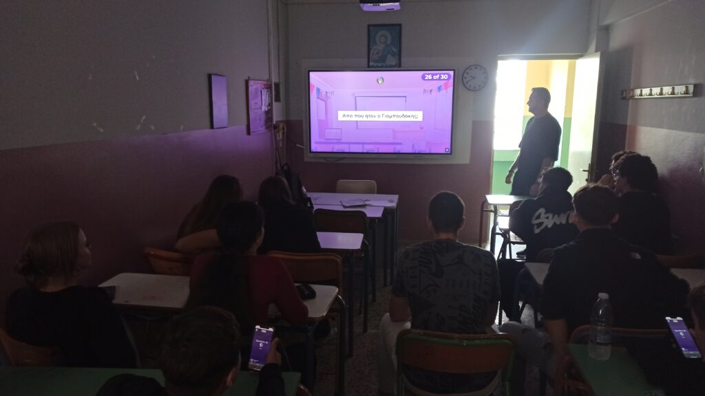 • Οι μαθητές/τριες συμμετείχαν σε ένα διαδραστικό παιχνίδι Kahoot, με ερωτήσεις γνώσεων για την ιστορία και τα πρόσωπα της εποχής.