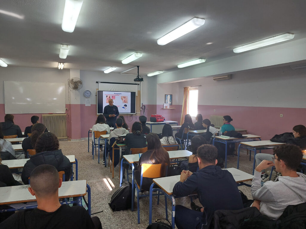 Κατά τη διάρκεια της παρουσίασης, οι μαθητές/τριες είχαν την ευκαιρία να ενημερωθούν για βασικές αρχές παροχής Πρώτων Βοηθειών, τη σωστή αντίδραση σε περιπτώσεις έκτακτης ανάγκης, καθώς και για τον ρόλο και το έργο του ΕΚΑΒ. Η δράση περιλάμβανε πρακτικές οδηγίες και παραδείγματα, τα οποία παρουσιάστηκαν κατανοητό και διαδραστικό, ενώ οι μαθητές/τριες συμμετείχαν ενεργά καθ’ όλη την διάρκεια