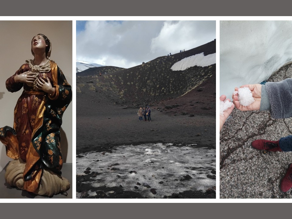 Η Πέμπτη 12/03/2026 ήταν μια πολύ ενδιαφέρουσα ημέρα καθώς έγινε επίσκεψη στην Αίτνα, το ψηλότερο ενεργό ηφαίστειο της Ευρώπης, μνημείο Παγκόσμιας Κληρονομιάς λόγω της γεωλογικής και επιστημονικής της σημασίας. Η εμπειρία της πεζοπορίας στους κρατήρες της κορυφής και οι ιστορίες των ανθρώπων που ζουν στις παρυφές της, άρρηκτα δεμένες με την ιστορία του ηφαιστείου, διδάσκουν τον σεβασμό στο περιβάλλον και την αλληλεγγύη μπροστά στη δύναμη της φύσης. Επόμενος σταθμός ήταν η Ταορμίνα, το ελληνικό Ταυρομένιον. Το κορυφαίο αξιοθέατο της πόλης είναι το περίφημο Αρχαίο Ελληνικό Θέατρο (Teatro Greco) που χρονολογείται από τον 3ο π.Χ. αιώνα και που παραμένει ακόμα και στις μέρες μας εντυπωσιακό, καθώς οδηγεί τον επισκέπτη στη συνειδητοποίηση ότι η πολιτισμική κληρονομιά δεν είναι ένα στατικό απολίθωμα, αλλά μια διαρκής συνομιλία του παρελθόντος με το παρόν.