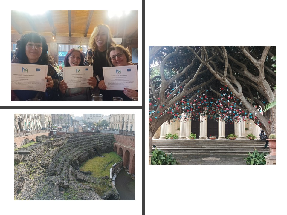 Κατά την πρώτη μέρα της επίσκεψης (9/3/2026) έγινε ξενάγηση στην πόλη της Κατάνιας από τους/τις μαθητές/τριες του σχολείου υποδοχής. Η σύνδεση της πολιτιστικής κληρονομιάς με τη σύγχρονη ζωή της πόλης μέσα από τις προφορικές αφηγήσεις λειτούργησε ως βιωματική μεταφορά γνώσης: οι μαθητές/τριες δεν παρέθεσαν απλώς χρονολογίες, αλλά «έντυσαν» τα μνημεία με ιστορίες, μετατρέποντας τον δημόσιο χώρο σε ένα ανοιχτό βιβλίο.