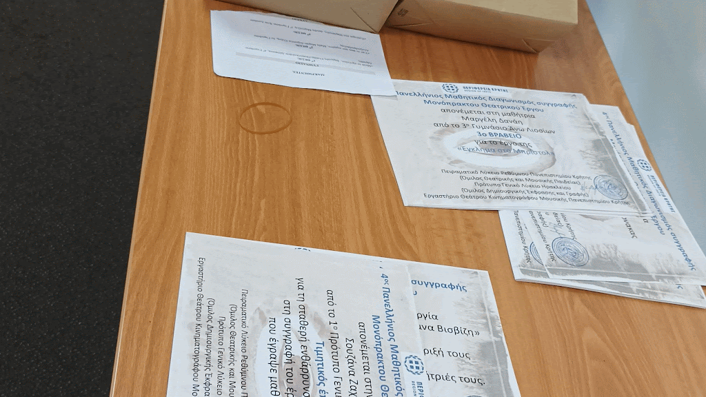 Όσοι έχουν ασχοληθεί με το θέατρο στο σχολείο έχουν διαπιστώσει τη σημαντική προσφορά του στην εκπαιδευτική διαδικασία με την καλλιέργεια των κοινωνικών, συναισθηματικών, πολιτισμικών και δημιουργικών δεξιοτήτων των μαθητών. Έτσι το Πειραματικό Λύκειο Ρεθύμνου Π.Κ. – Όμιλος Θεατρικής και Μουσικής Παιδείας, το Πρότυπο Γενικό Λύκειο Ηρακλείου – Όμιλος Δημιουργικής Έκφρασης και Γραφής και το Εργαστήριο Θεάτρου – Κινηματογράφου – Μουσικής του Πανεπιστημίου Κρήτης αξιοποιούν την παραπάνω διαπίστωση και εδώ και τέσσερα χρόνια διοργανώνουν τον Πανελλήνιο Μαθητικό Διαγωνισμό Συγγραφής Μονόπρακτου Θεατρικού Έργου. Τα Μονόπρακτα είναι πρωτότυπα, με ελεύθερη θεματολογία και υπάρχει η δυνατότητα τα έργα να είναι ατομικά ή ομαδικά.